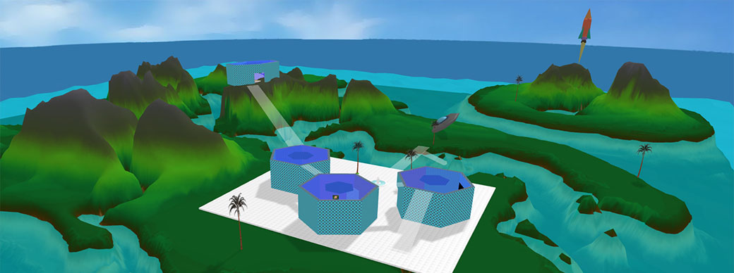 Open Simulator could be hosted on a colaborative server composite virtual world platform called OSGrid. While running my server, one hacker decided to change the water level of the ocean before I had locked down those controls, and flooded the entire island in 50 feet of water. That and other inappropriate content created by other visitors made me create a set of rules governing what could be done in the virtual space.